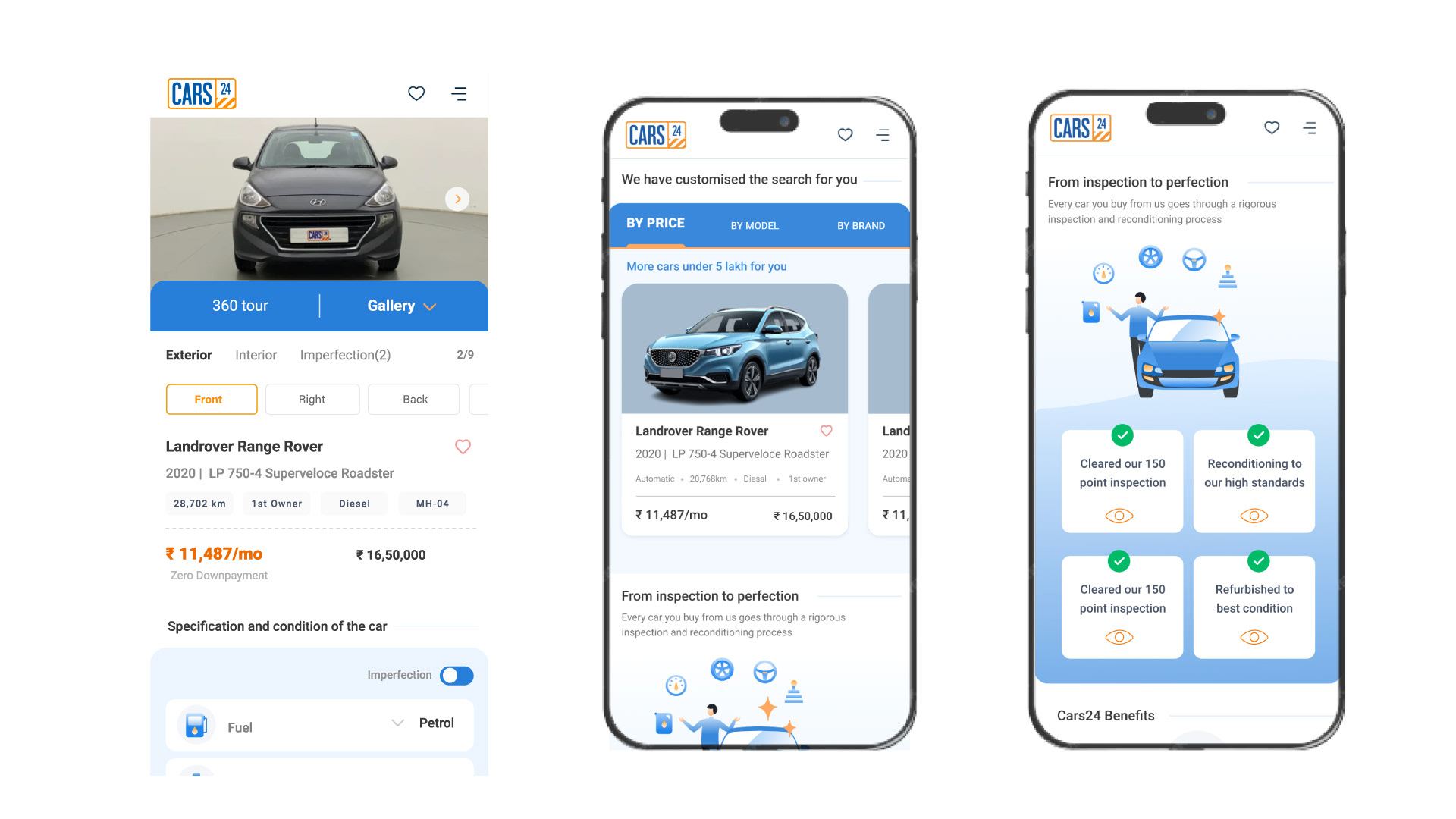 Cars 24. Re-imagining user interface for mobile version