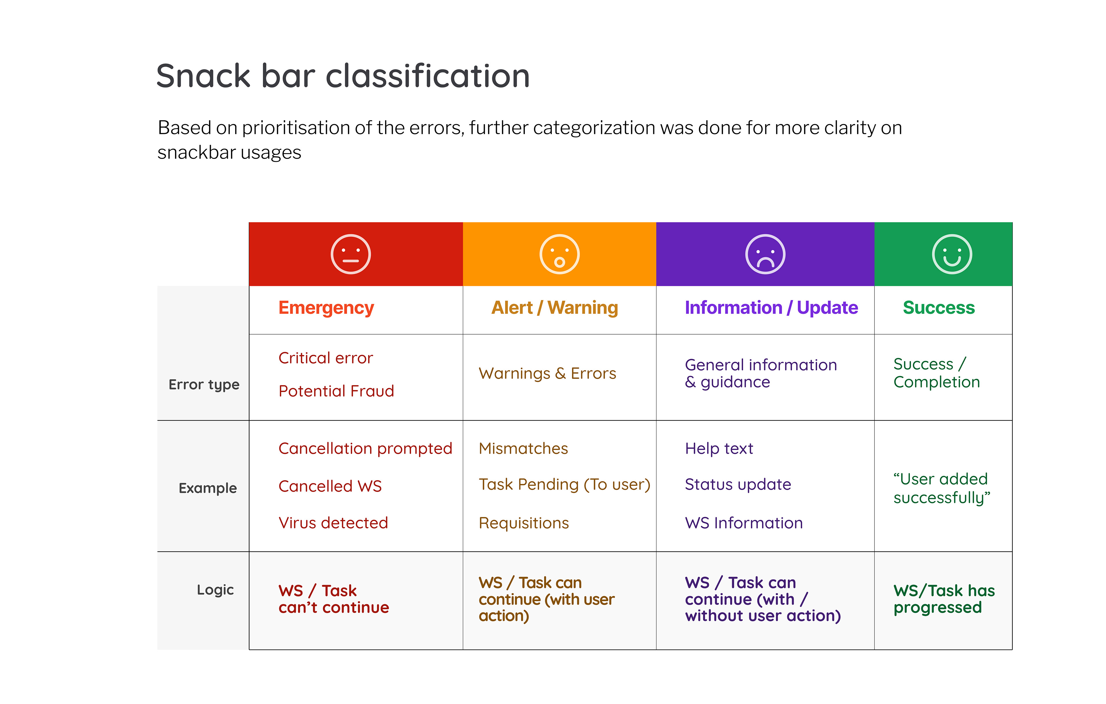 Snack bar classification for PEXA